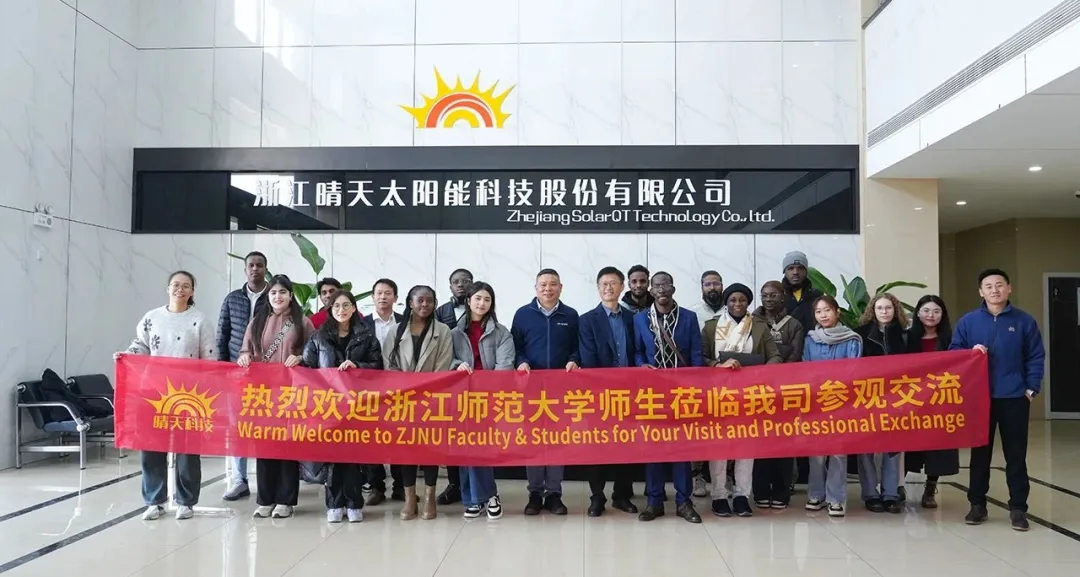 2025年2月28日,浙江师范大学国际处沈处长带领20余名来自全球十几个国家的留学生走进晴天科技总部,开展了一场以“中国光伏与世界”为主题的参观交流活动。作为光伏行业的标杆企业,晴天科技向师生们展示了清洁能源技术的创新成果与企业文化内核。